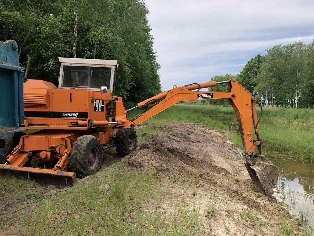 Послуги екскаватора Schaeff. Виконуємо роботи по копанню котлованів, траншей, фундаментів, демонтаж старих будівель, плануванню території, зрізання дерев, вантажні перевезення, завантаження землі або будівельного сміття, погрузка або розвантаження піддонів, розчищення снігових заметів.